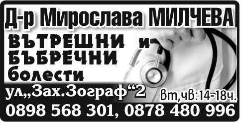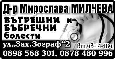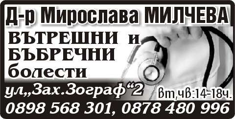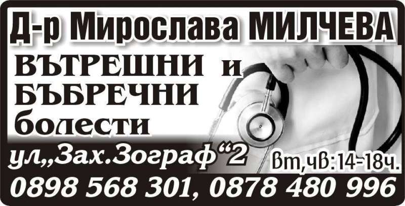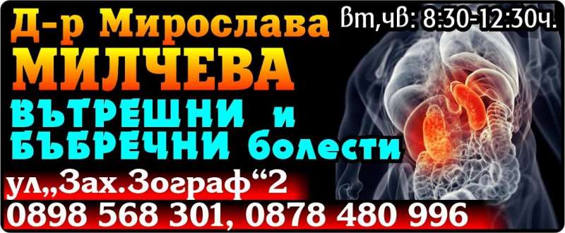| Описание: | ВЪТРЕШНИ и БЪБРЕЧНИ Болести, вт,чв:14-18ч. |