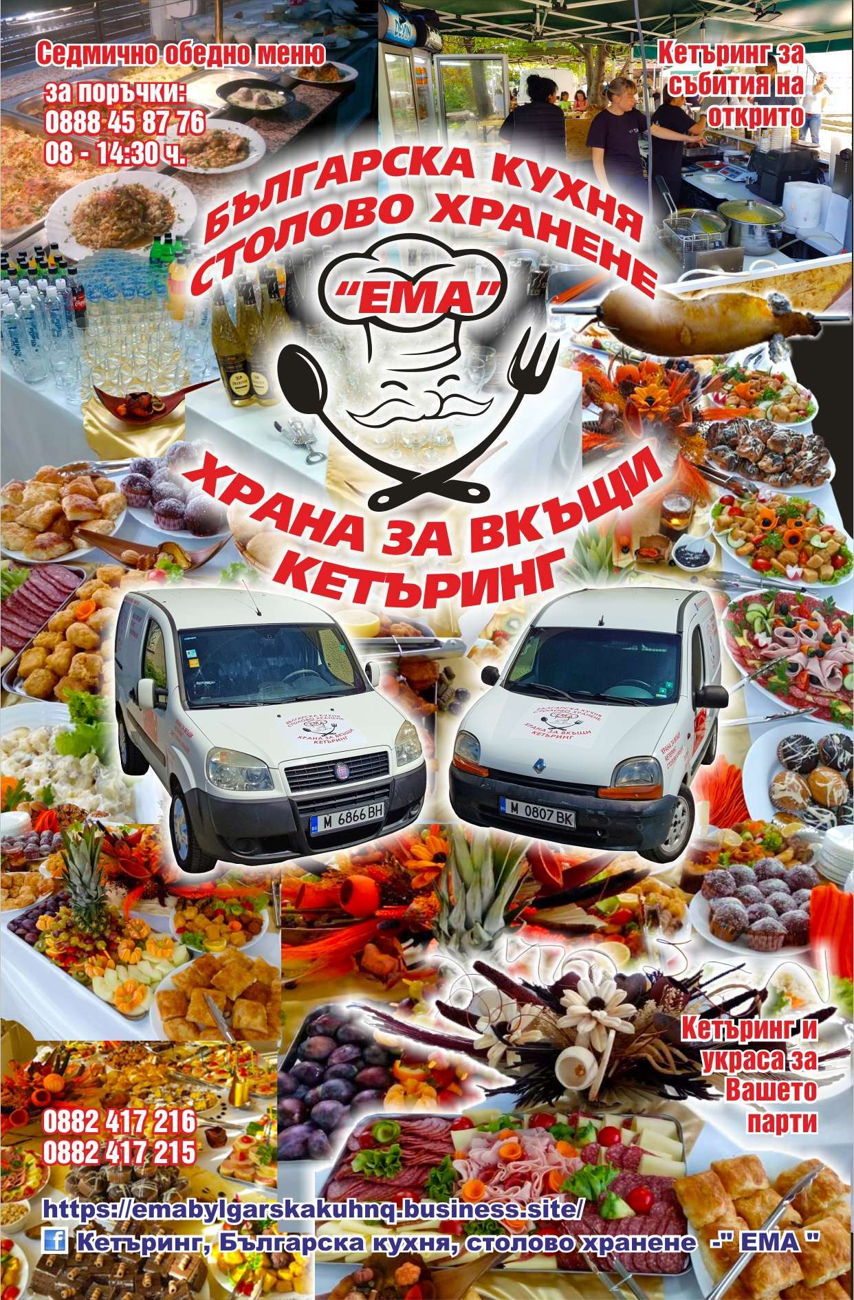 БЪЛГАРСКА КУХНЯ. БЪЛГАРСКА КУХНЯ “ЕМА”. ХРАНА ЗА ВКЪЩИ. КЕТЪРИНГ. Седмично обедно меню. Кетъринг за събития на открито. Кетъринг и украса за Вашето Парти. за поръчки: - 14:30 ч.