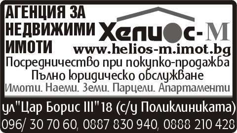 АГЕНЦИЯ ЗА НЕДВИЖИМИ ИМОТИ ХЕЛИОС – М. -Посредничество при сделки с имоти, -Пълно юридическо обслужване, -Съдействие за банков кредит